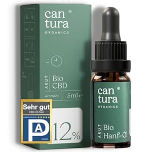 Ursprünglicher Preis war: €29,99€25,20Aktueller Preis ist: €25,20.Cantura CBD Öl Bio 12%, Hanföl CBD Tropfen mit Premium Cannabidiol als Vollspektrum Extrakt, vegan 5 ml Flasche