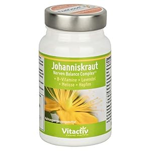 JOHANNISKRAUT – Nerven Balance Complex – 4 natürliche Kräuter und Vitamine zur Unterstützung des Nervensystems und der psychischen Gesundheit* – hochdosiert – 60 Kapseln (Monatspackung)