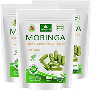 Moringa Kapseln 600mg oder Moringa Energy Tabs 950mg – Oleifera, vegan, Qualitätsprodukt von MoriVeda (360 Kapseln)