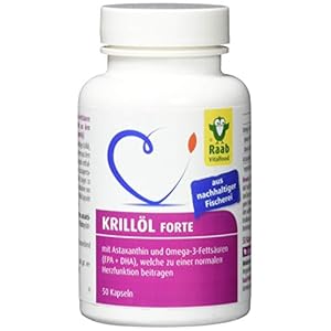 Raab Vitalfood Krillöl Forte, 50 Kapseln aus nachhaltiger Fischerei mit Astaxanthin, Omega-3 EPA und DHA für normale Herzfunktion, laborgeprüft