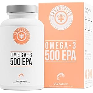 Omega-3 in HÖCHSTDOSIS, 1000mg reines Fischöl von ADDEDGREEN, 240 hochdosierte Kapseln mit 500mg EPA und 250mg DHA pro Kapsel