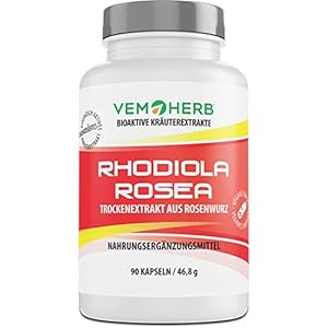 Rhodiola rosea (Rosenwurz) – 4 Monate Vorrat • Hochdosiert: 5,28% Rosavine (15,84 mg) zu 2,29% Salidroside (6,87 mg) • ohne Zusätze • Extrakt aus der Wurzel zu 2,29% Salidroside (6,87 mg) • ohne Zusätze • 120 Extrakt Kapseln je 300 mg
