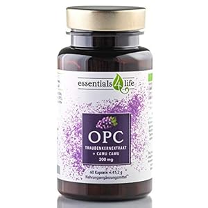 OPC Kapseln hochdosiert + Vitamin C aus Camu-Camu, 924 mg Traubenkernextrakt je Tagesdosis I Für Haare, Haut, Nägel, Nervensystem