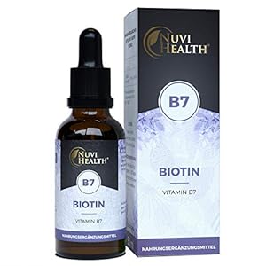 Nuvi Health® Biotin Flüssig – 10 mg – 50 ml = 1240 Tropfen – D-Biotin (Vitamin B7) für Haut & Haare – Höchste Bioverfügbarkeit – Laborgeprüft – Vegan – Vanille Geschmack – Hochdosiert